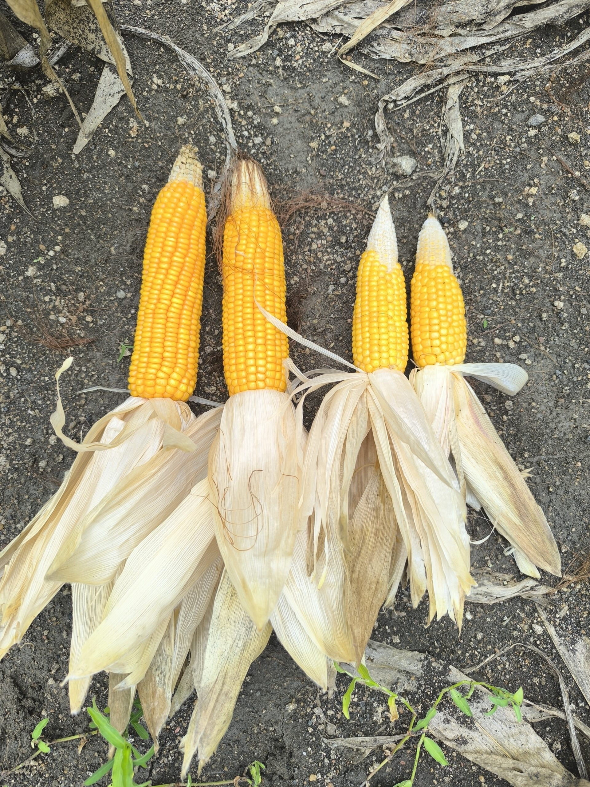 (Left) Treated maize seeds provided bigger, healthier corn cobs (left) compared to untreated maize seeds, which produced smaller corn cobs (right). | Picture credit: Govindappa Kudagunti, Prarambha