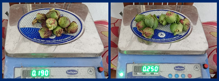 Difference in weights of untreated (left) and treated (right) cotton bolls.